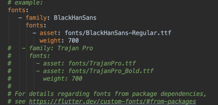 안드로이드 스튜디오 디렉토리 fonts 만들어서 넣어주고 -> pubspec.yaml 수정해줄거임