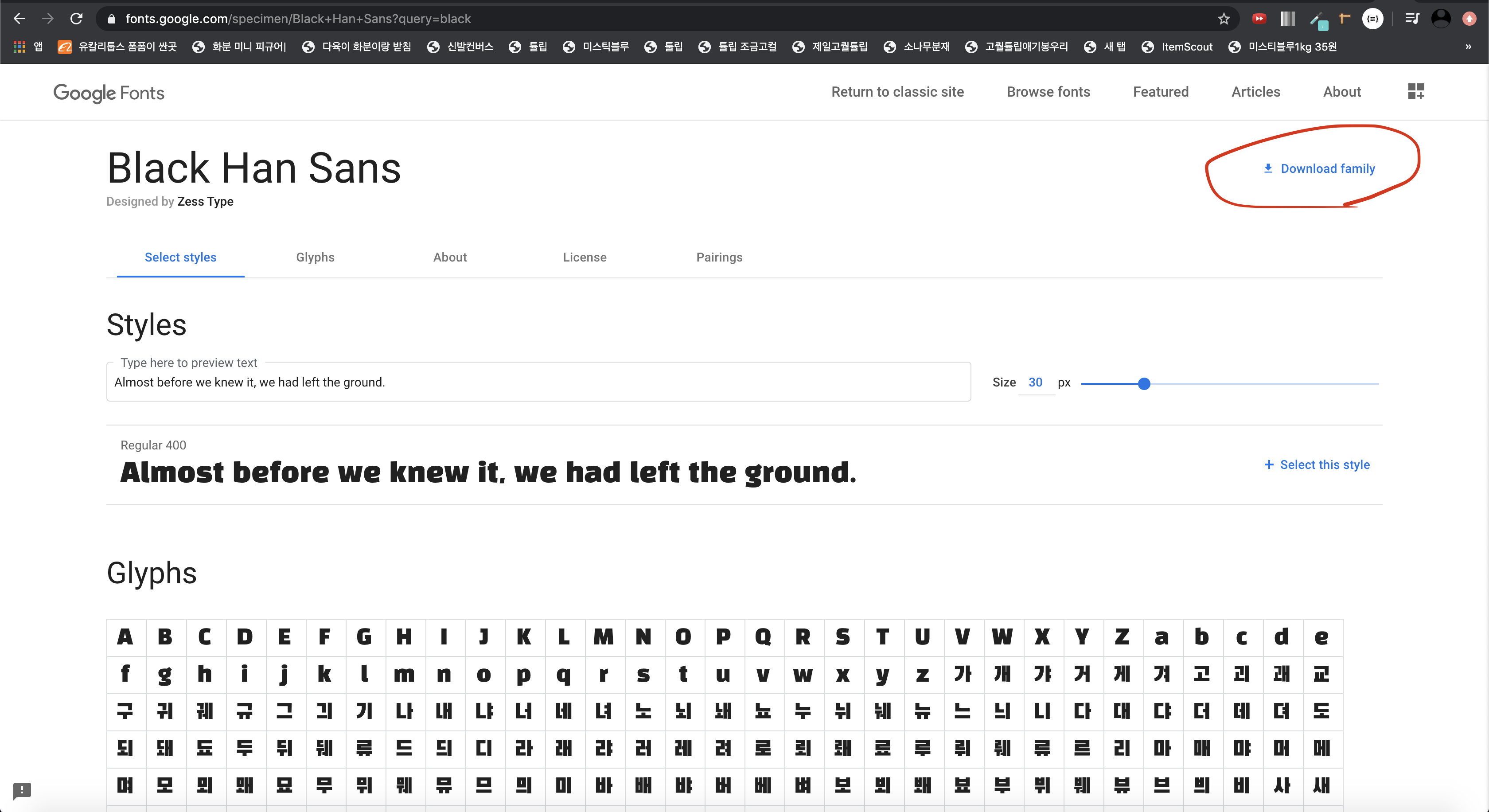 구글 폰트에 접속 -> 표시한부분 다운로드한파일을 ->