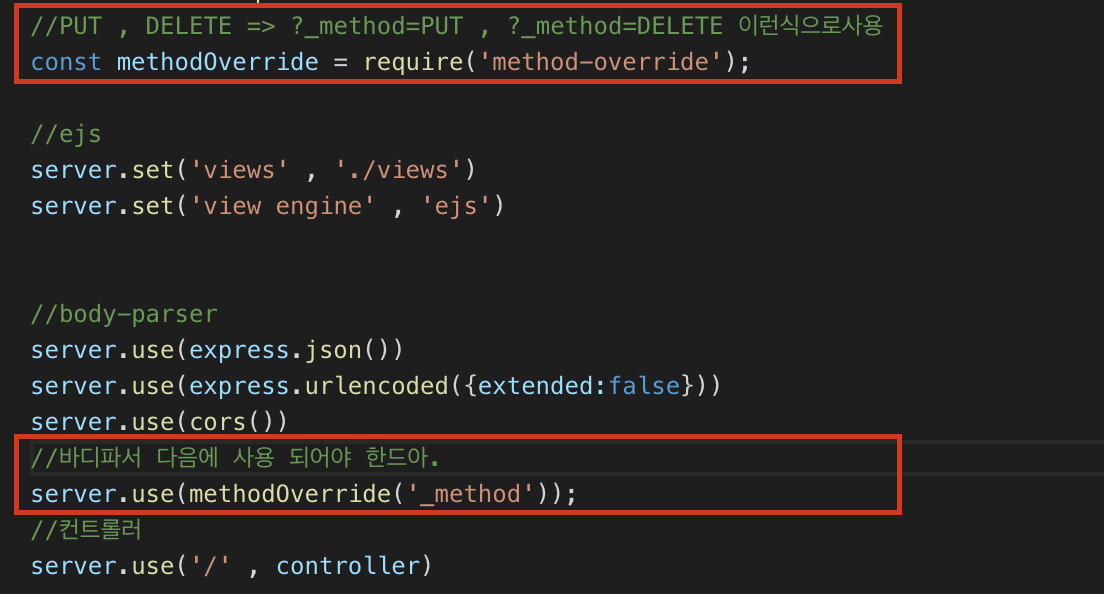npm install method-override 모듈설치.